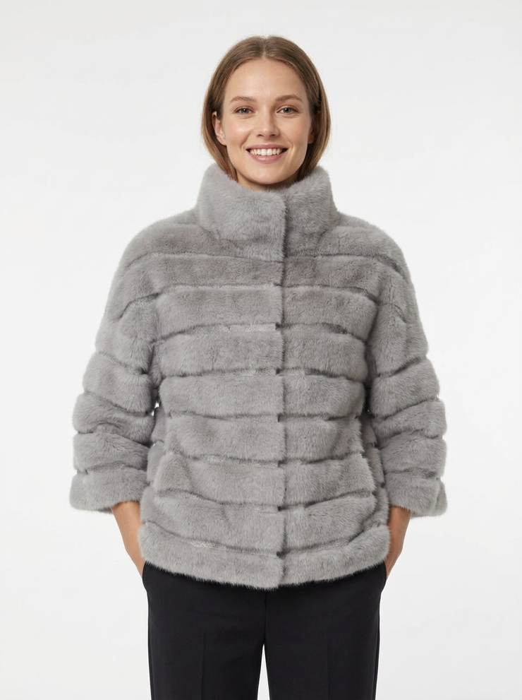 ARTICO FAUX-FUR COAT WITH HORIZONTAL PANELS